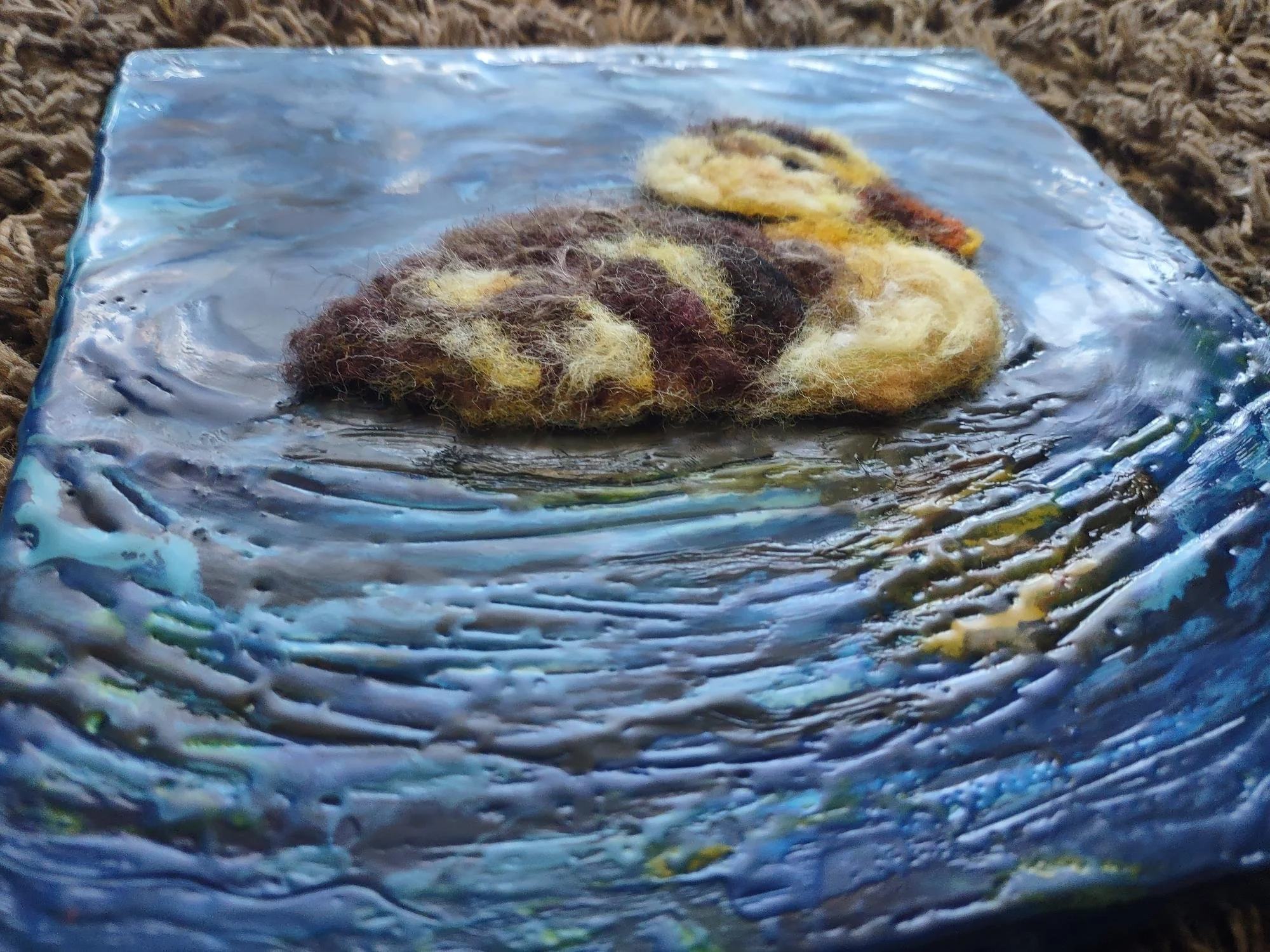 A passion for vibrant colour and bold texture finds a voice in needle-felted wool and encaustic wax.